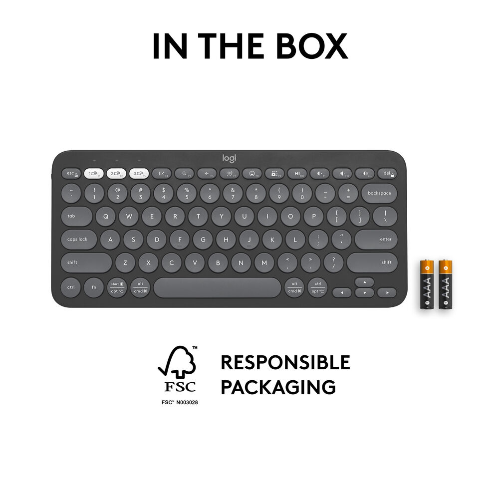 Logitech Pebble Keys 2 K380S Wireless Keyboard (Tonal Graphite) / ( En / Ar )