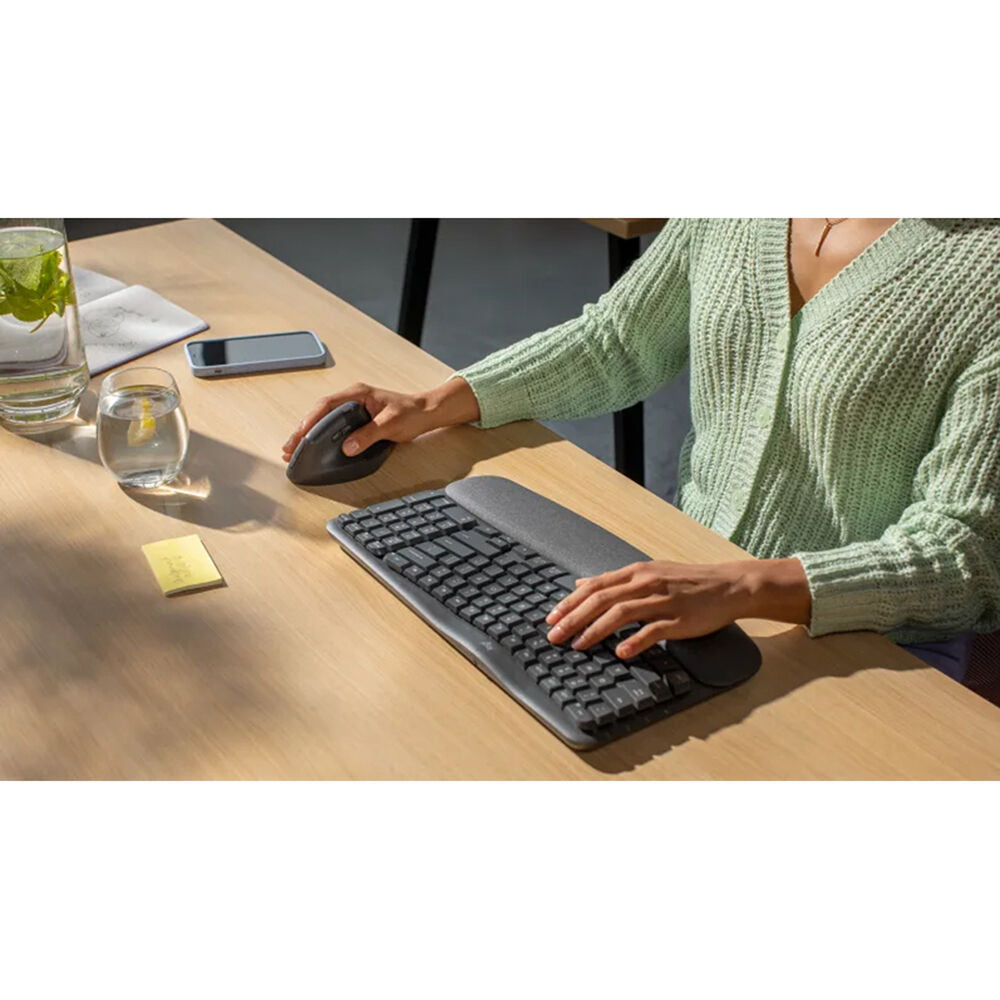 The Logitech Multi-Device Wireless Keyboard is designed for maximum comfort, productivity, and versatility. Featuring 2.4 GHz RF and Bluetooth connectivity, this keyboard allows seamless switching between up to three devices. Its wave-shaped ergonomic design, integrated 3-layer palm rest, and built-in tilt legs ensure a comfortable typing experience even during long sessions. Compatible with multiple platforms and Logi Options+ software, this keyboard is perfect for both work and home setups.