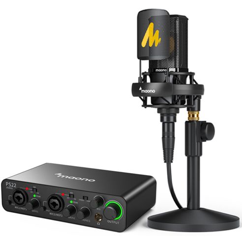 This professional recording bundle combines the Maono AU-PM500T large-diaphragm XLR condenser microphone with the Maono PS22 audio interface for a complete studio solution. Capture clear, natural sound with the PM500T’s 34mm gold-plated capsule and ultra-low self-noise design, while the PS22 interface provides seamless USB connectivity, 48V phantom power, and real-time monitoring. Ideal for musicians, podcasters, and content creators who demand broadcast-quality audio and plug-and-play simplicity.
