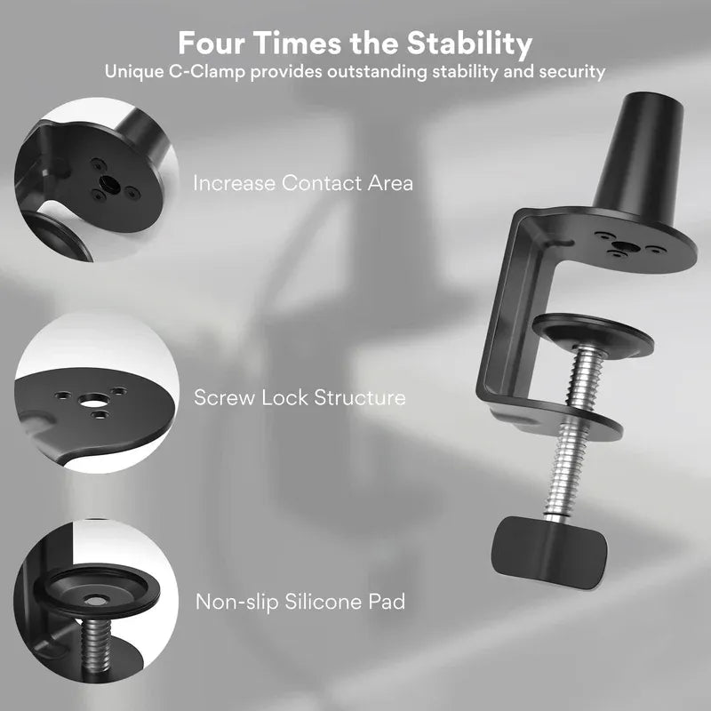 - Stable Desk Clamp: Heavy-duty metal clamp with anti-slip pad protects your desk and ensures secure mounting.