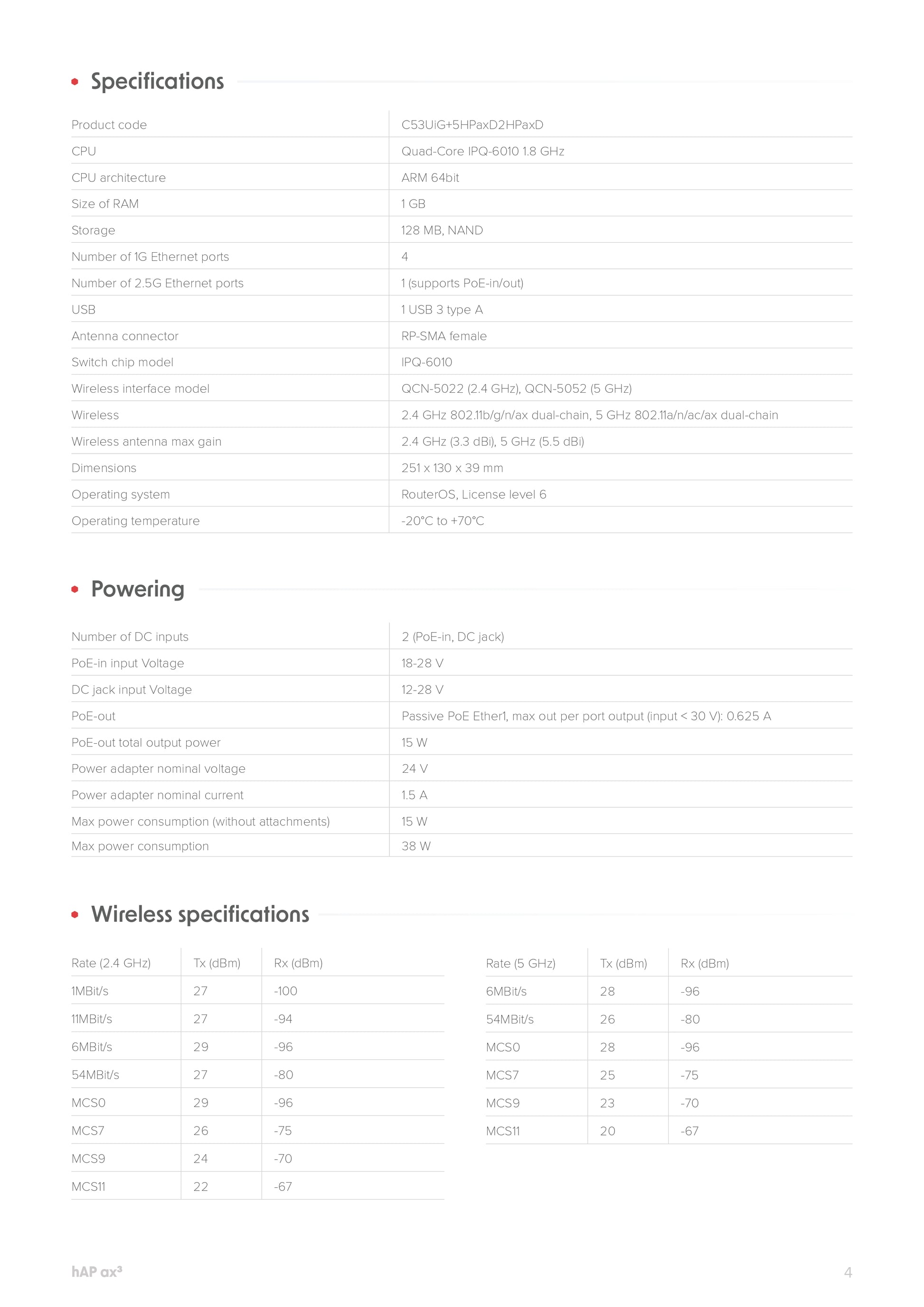 - CPU: Quad-Core IPQ-6010 1.8 GHz (ARM 64bit)