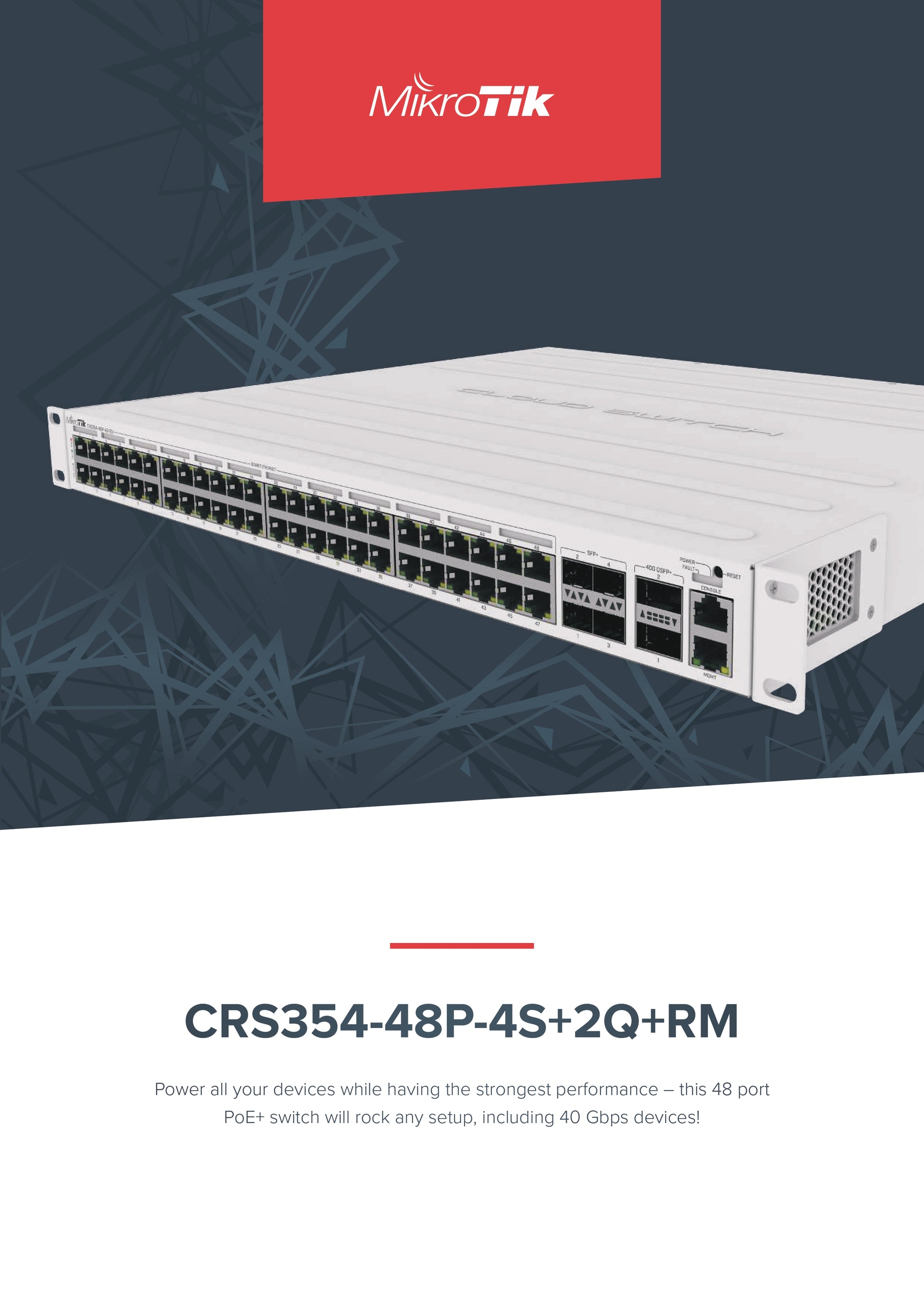 Upgrade your network with the MikroTik CRS354-48P-4S+2Q+RM, a powerful 48-port Gigabit PoE+ switch built for high-performance environments. Designed with both flexibility and speed in mind, it features 4 x 10G SFP+ ports and 2 x 40G QSFP+ ports for ultra-fast fiber uplinks or interconnects.