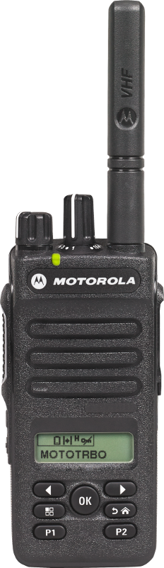 MOTOROLA MOTOTRBO DP2000e Series Digital Two-Way Radios, VHF, 64–128 Channels, IP67, SINC+ Noise Cancellation