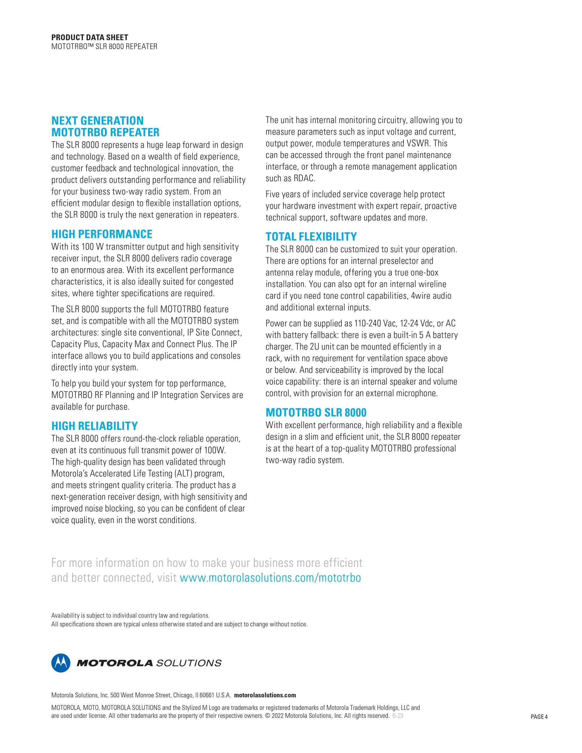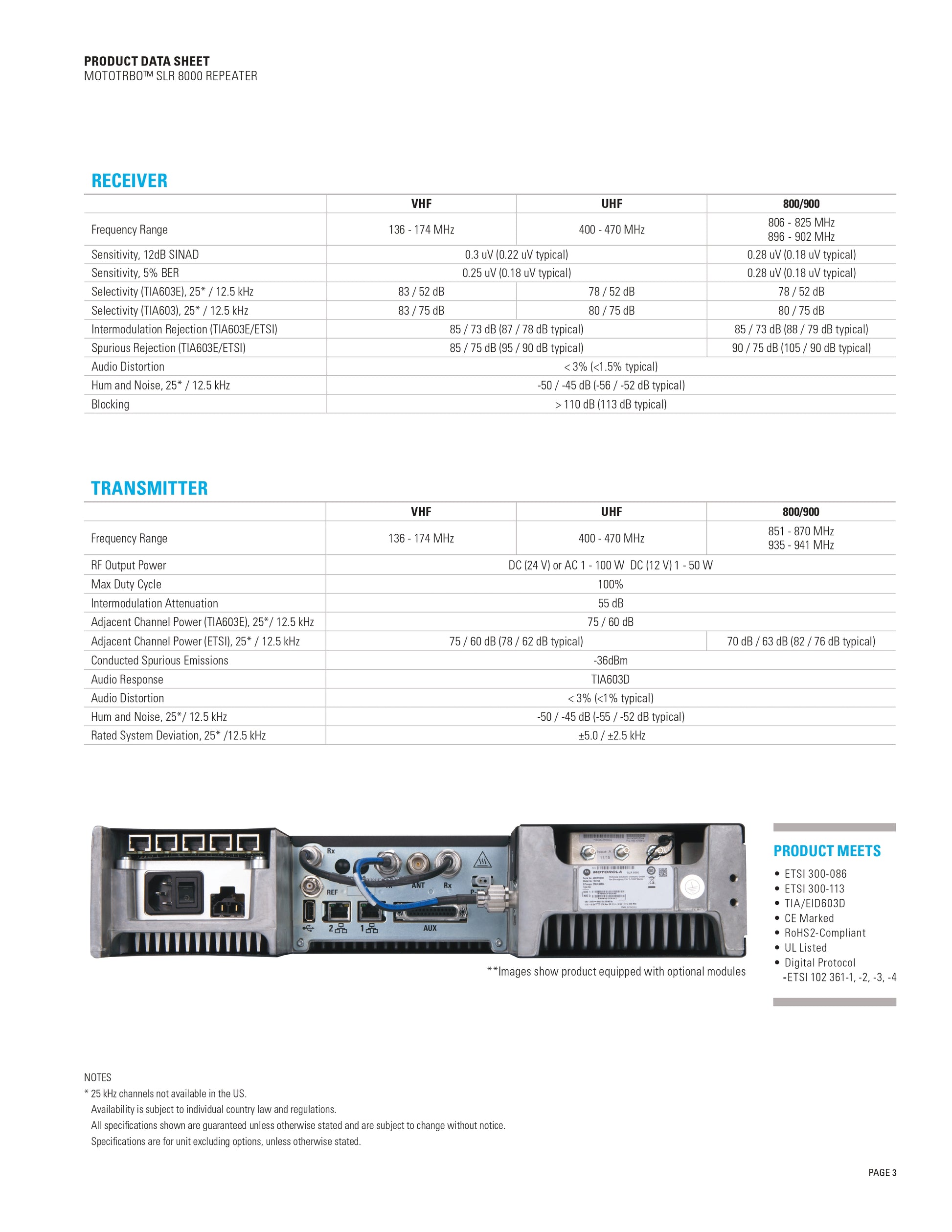 MOTOROLA MOTOTRBO™ SLR 8000 Repeater Base Station/Repeater - UHF/800/900 MHz - 100W - High Performance, High Reliability, Digital & Analog Compatibility