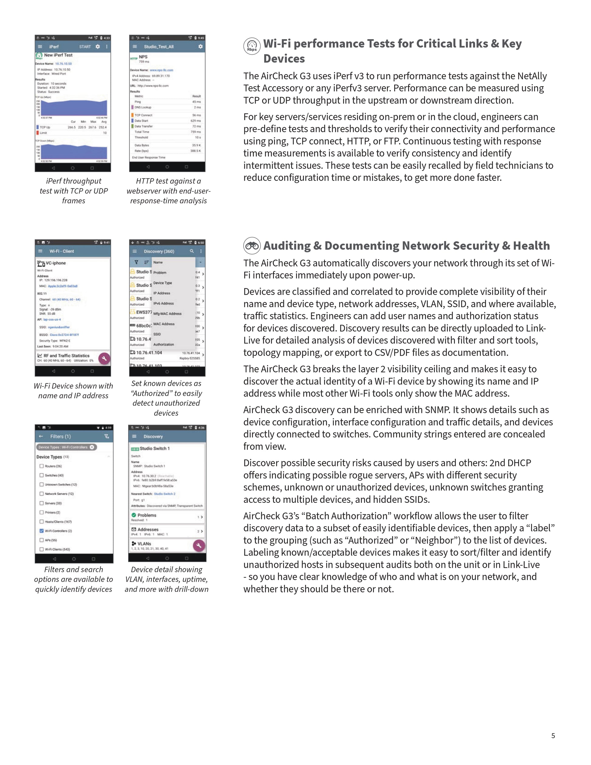 - Automatic discovery of Wi-Fi networks, access points, clients, and interference sources