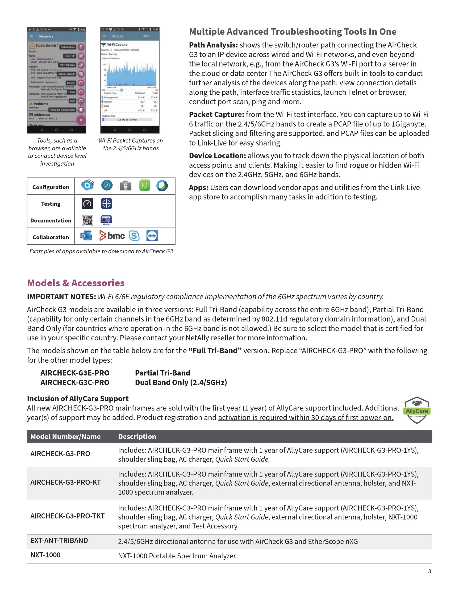 Whether you're deploying the latest Wi-Fi 6/6E networks or troubleshooting existing issues, the NetAlly AirCheck G3 Pro offers the speed, simplicity, and accuracy professionals need in the field. From its robust wireless testing capabilities to seamless cloud integration, it's the ultimate tool for wireless network professionals.