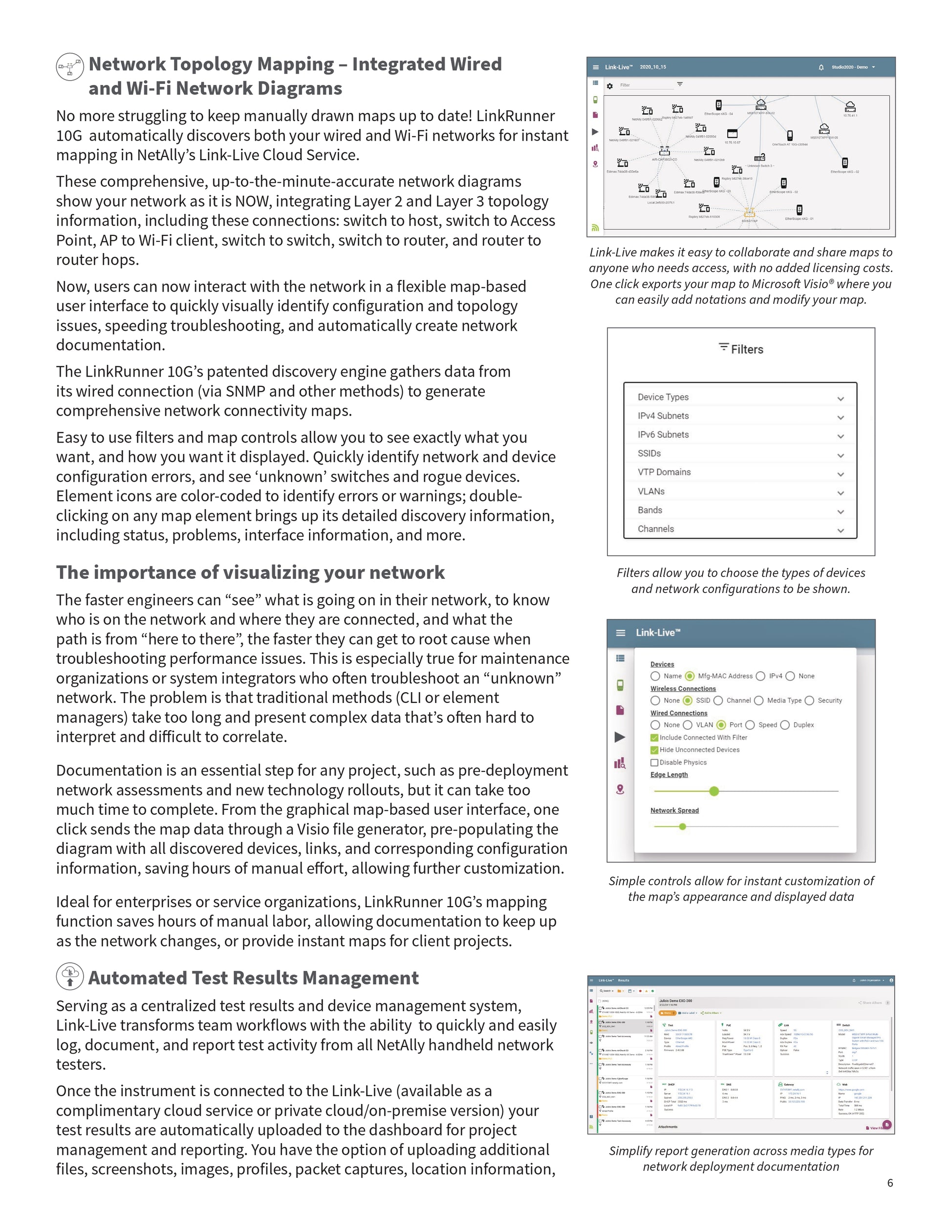 Network Mapping: The LinkRunner 10G can automatically discover and map your network, providing a visual representation of your network topology, including connected devices, their locations, and the interconnections between them.