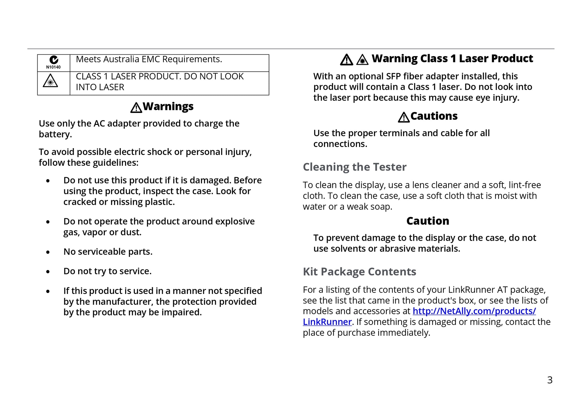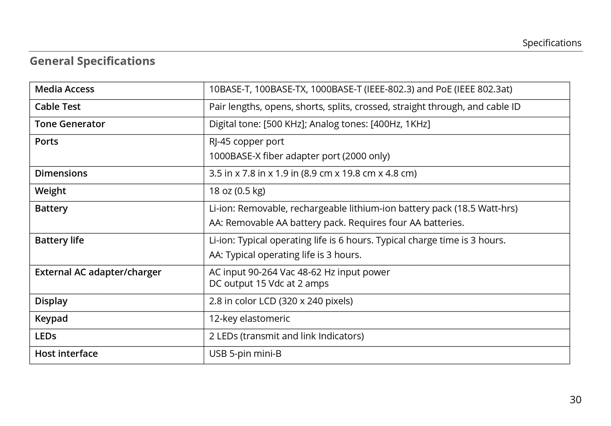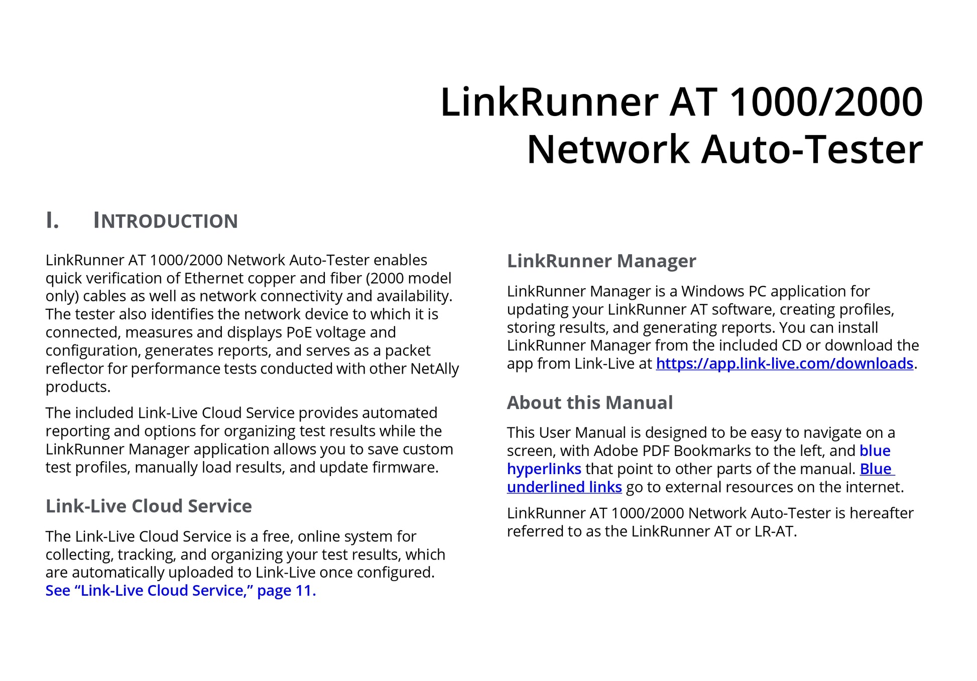 - Includes LinkRunner AT 2000 tester with rechargeable Li-ion battery