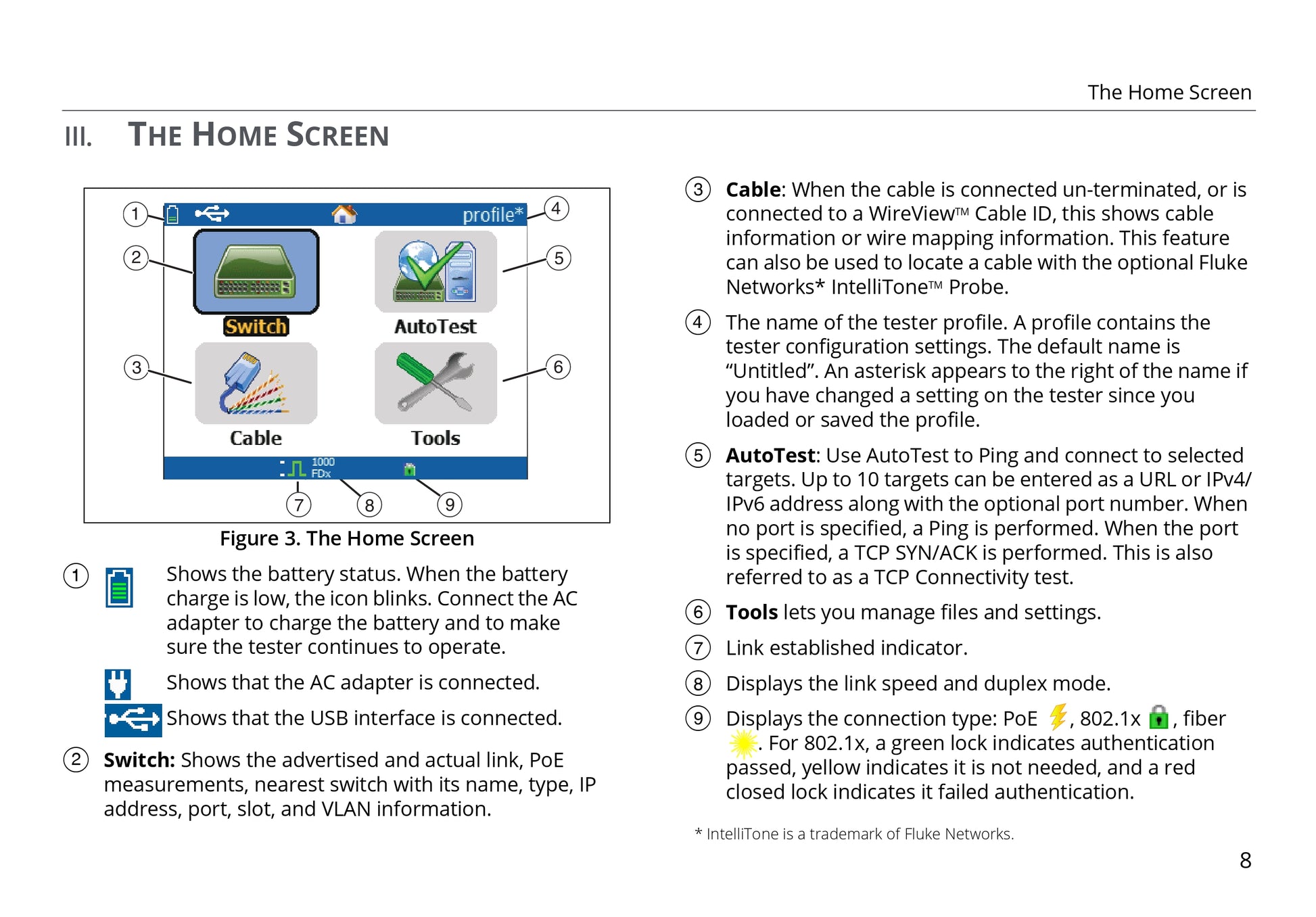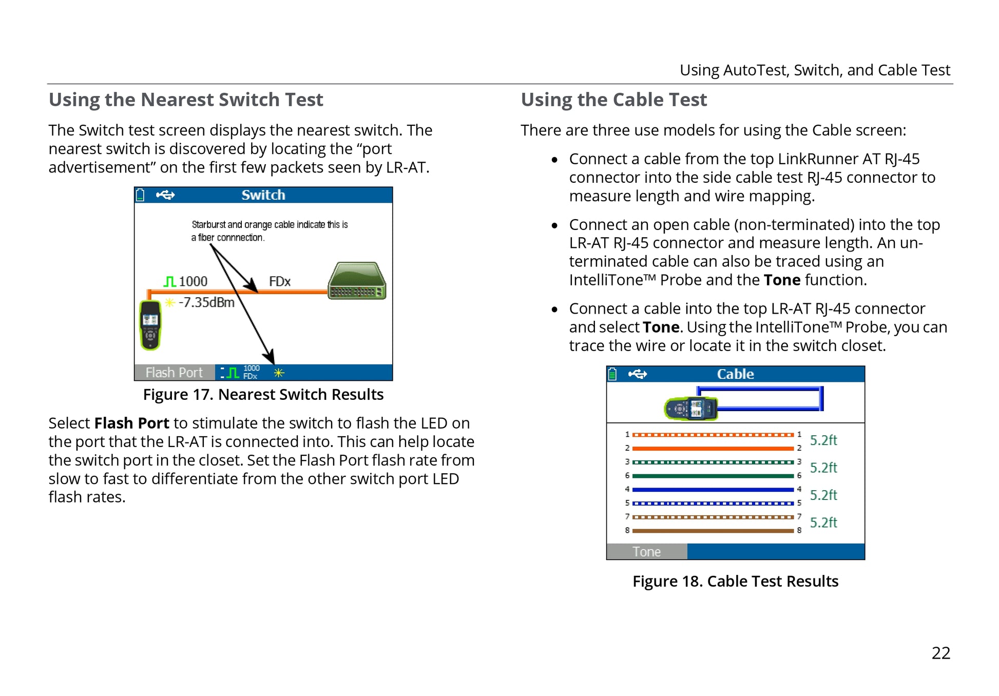 - Conducts basic cable testing for opens, shorts, splits, and wiremap with Cable ID #1-6