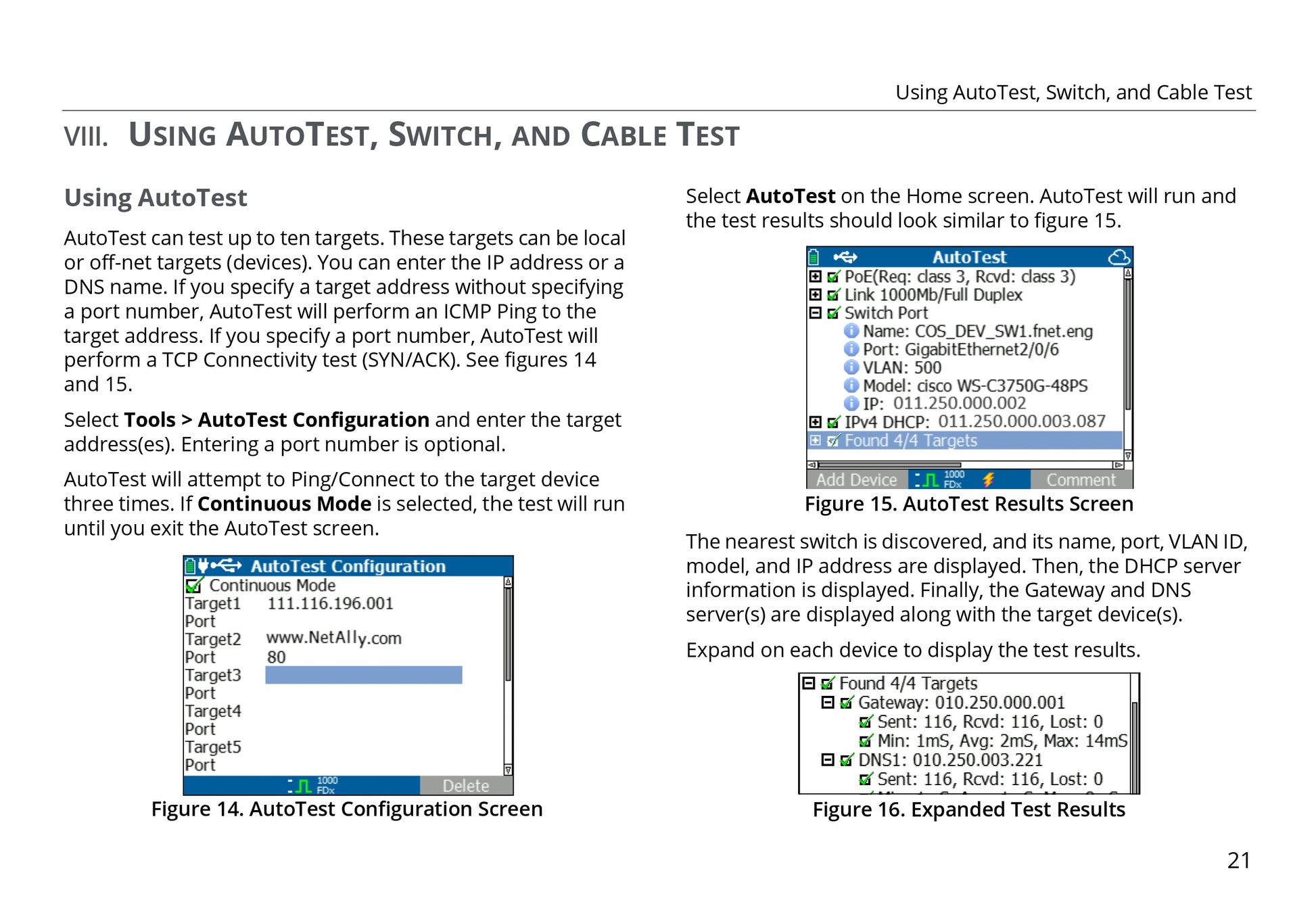 - Performs AutoTest to validate DHCP, DNS, Gateway, switch info, and PoE load up to 30W