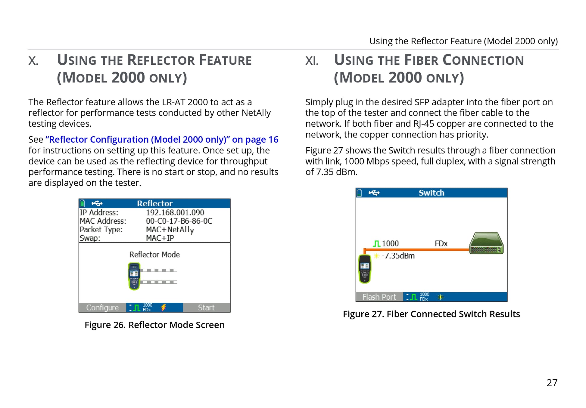 - Supports copper (RJ-45) and fiber (SFP) media access for 10/100/1000 Mbps testing