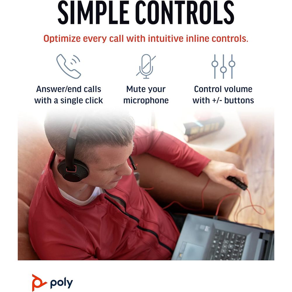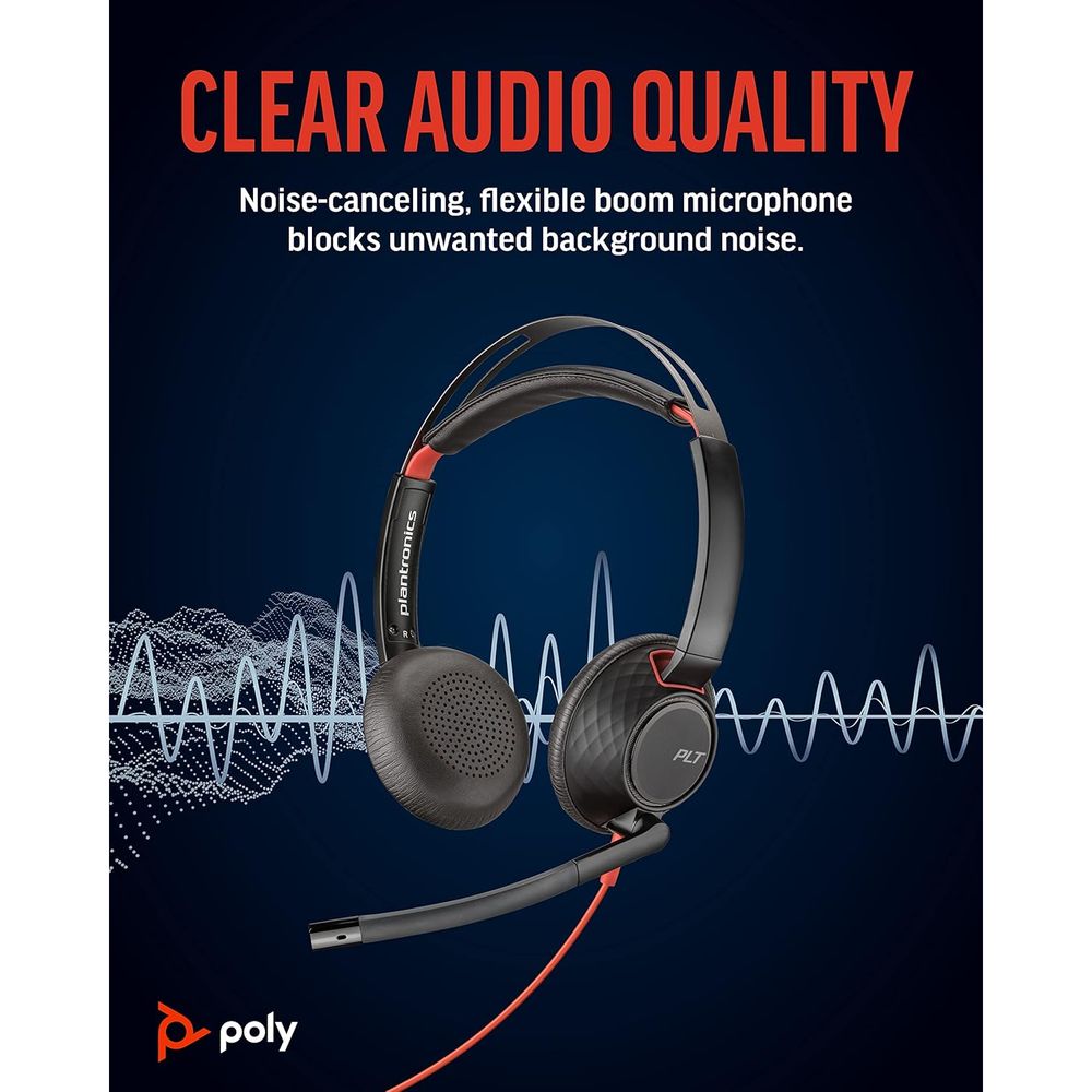 Poly Blackwire 5200 Series USB Wired Headset – Stereo or Mono, USB‑C/A + 3.5mm, Noise‑Cancelling Mic, Dynamic EQ, UC Certified