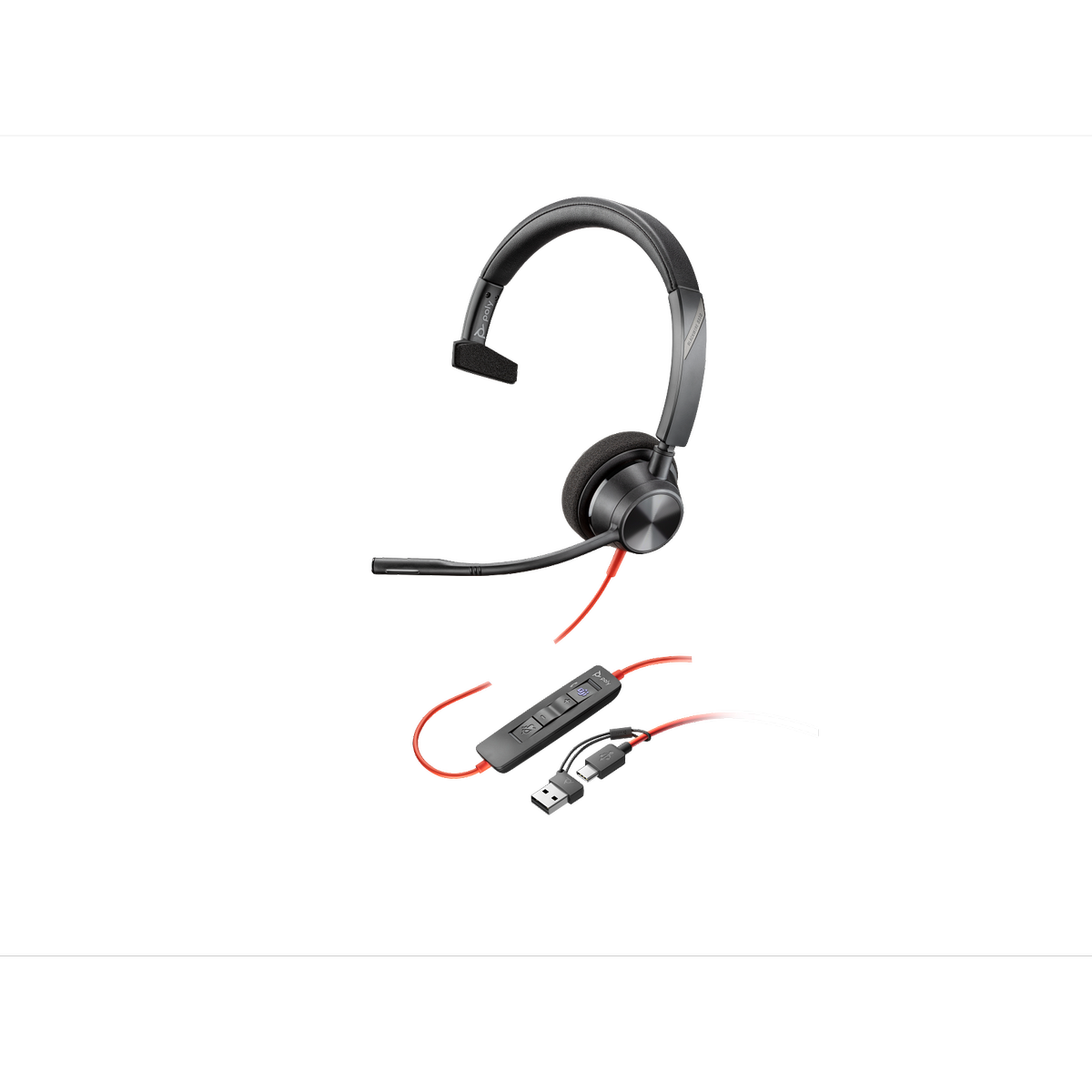 Poly Blackwire 3310 Mono USB-C Headset, Microsoft Teams Certified, Noise-Canceling Mic, Inline Controls, with USB-C/A Adapter
