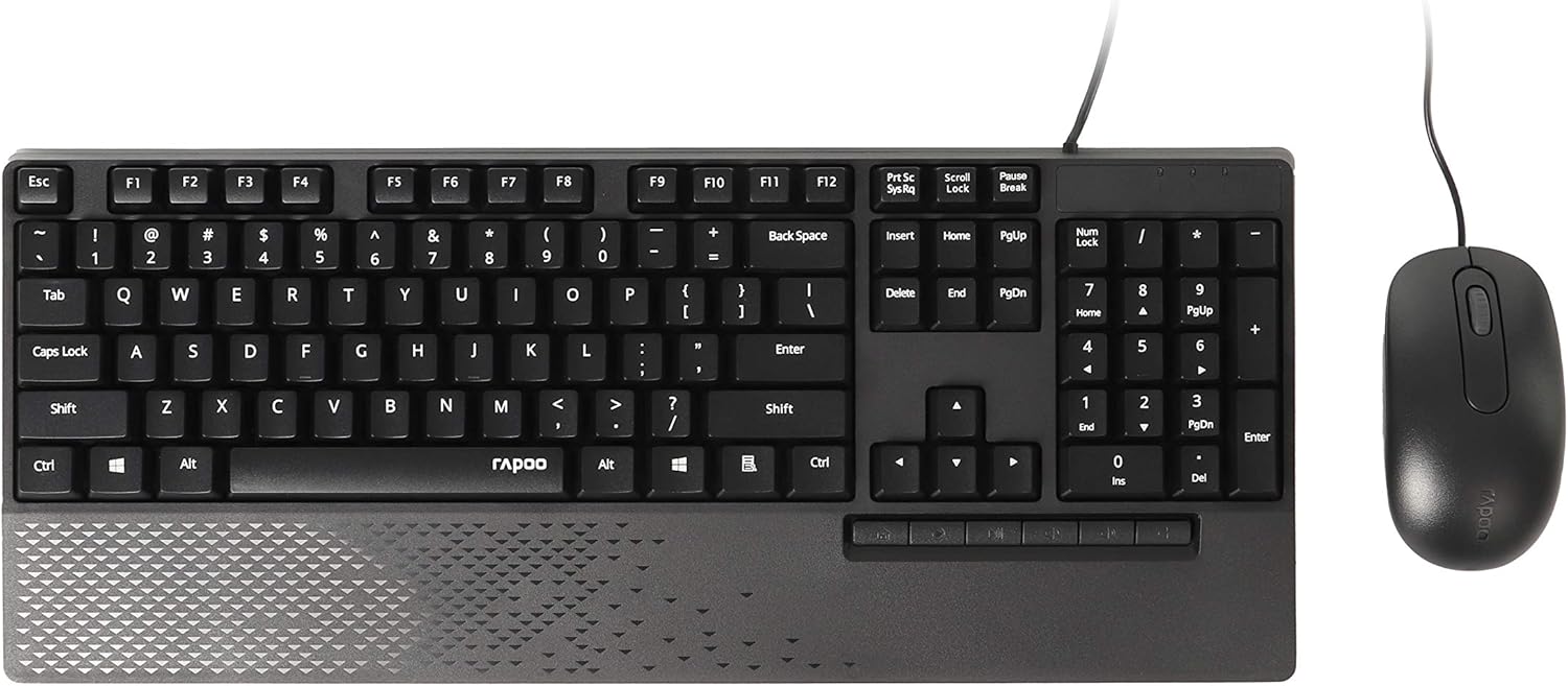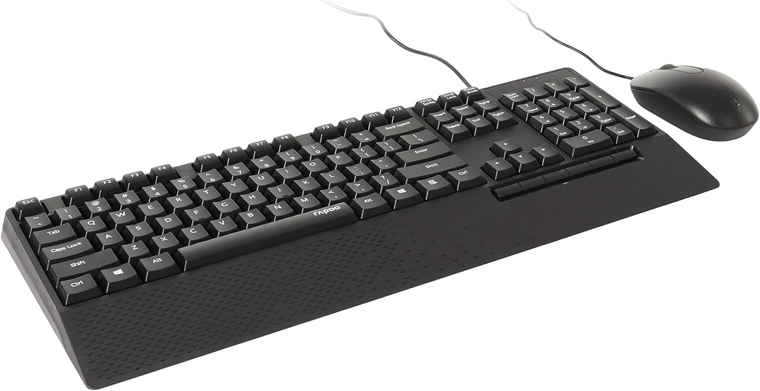 Rapoo NX2000 Wired Keyboard and Mouse Combo – Spill-Resistant Keyboard, 1600 DPI Optical Mouse, USB 3.0, Plug-and-Play, Black