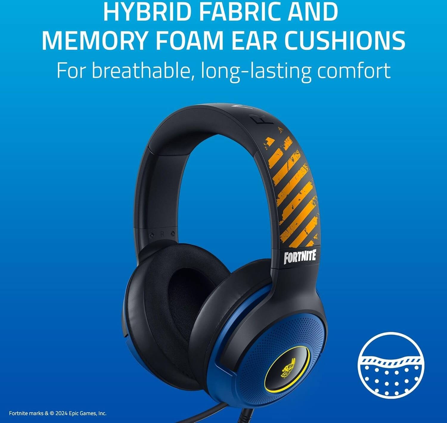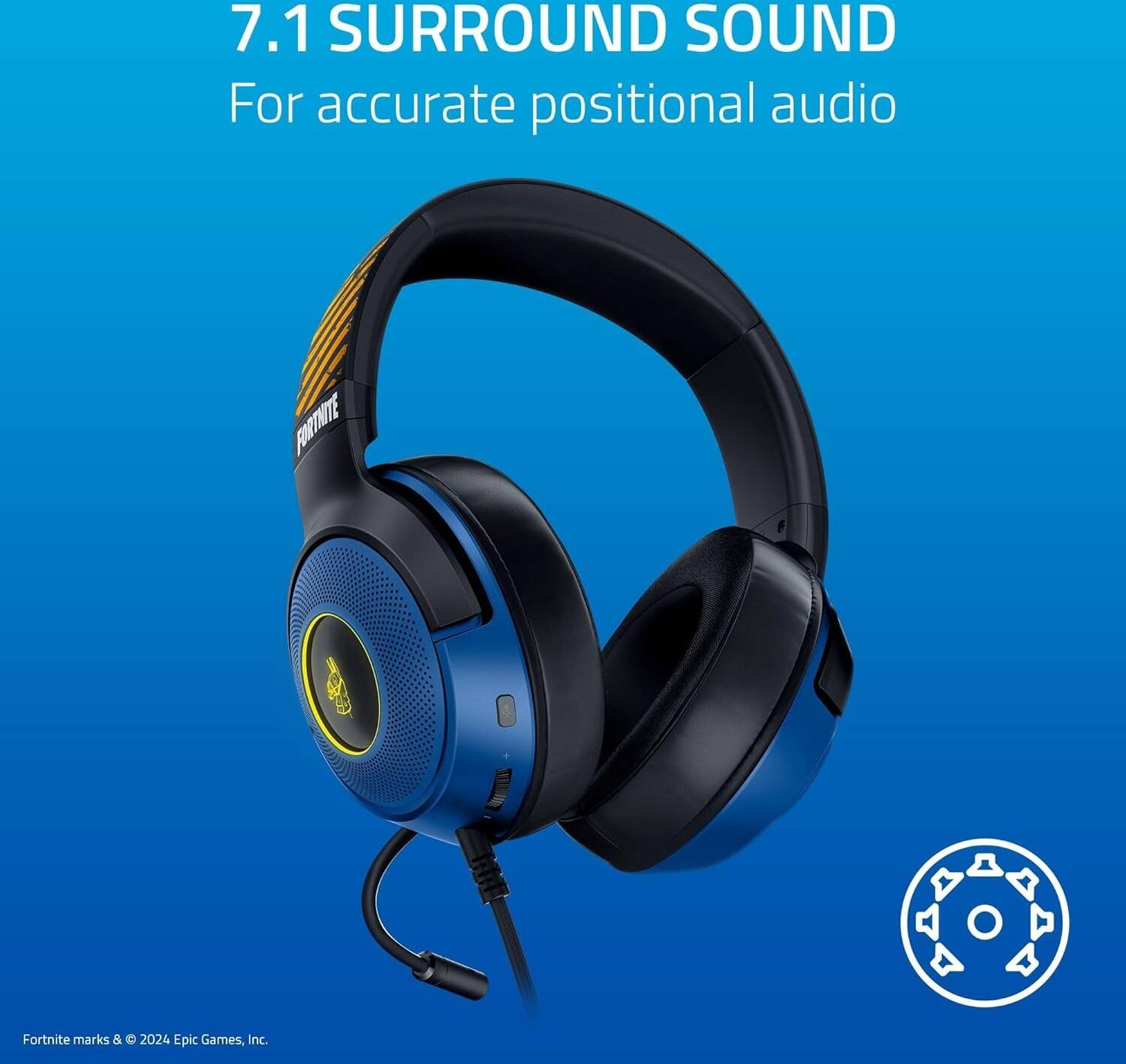 Razer Kraken V3 X Wired USB Gaming Headset - Fortnite Edition, 40mm TriForce Drivers, Chroma RGB Lighting, HyperClear Cardioid Mic, 7.1 Surround Sound, 285g Lightweight, Blue