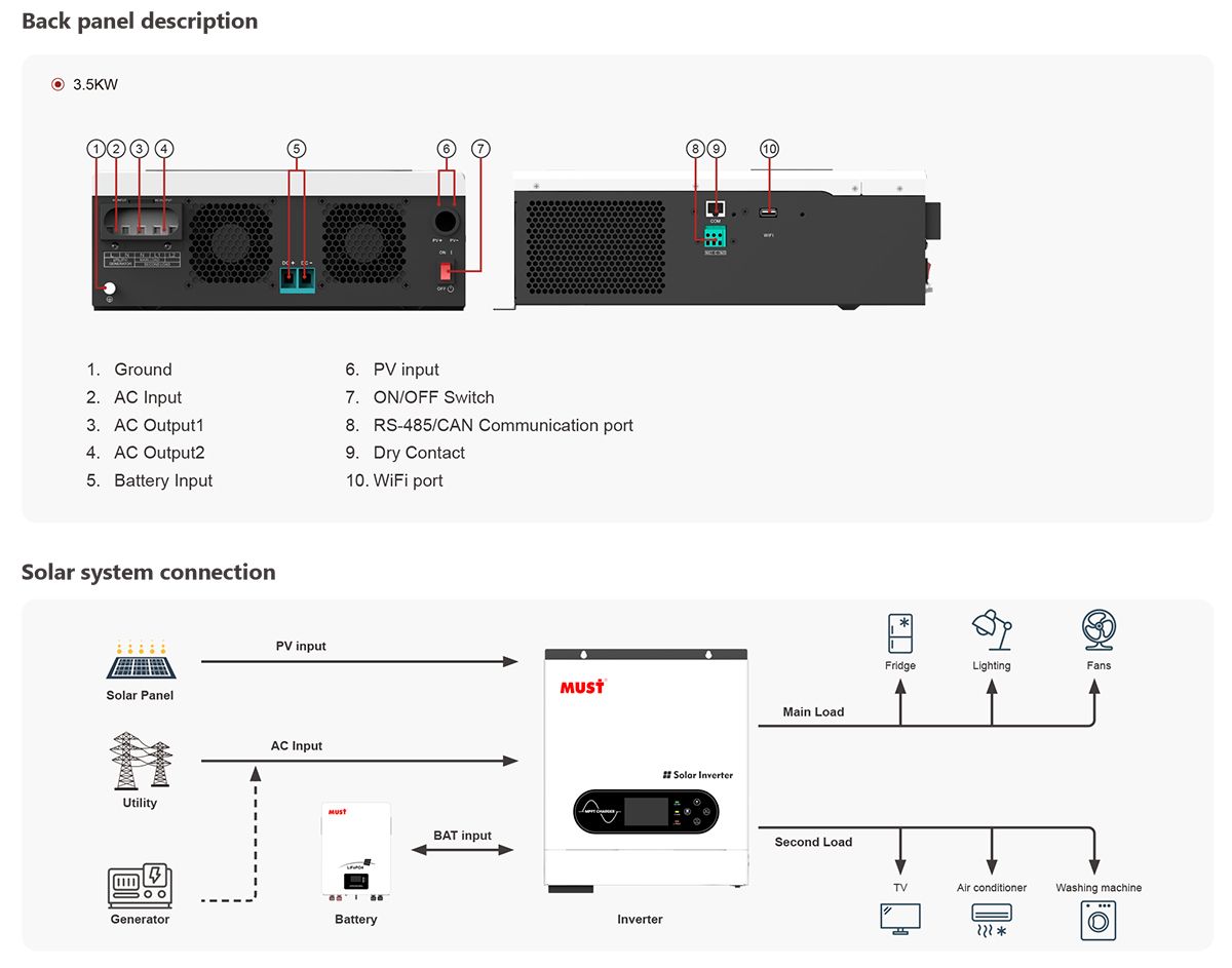 MUST PV18-3524 ECO 3.5KW - 24V Off-Grid Solar Inverter with MPPT, Dual Output, and Battery-Free Operation