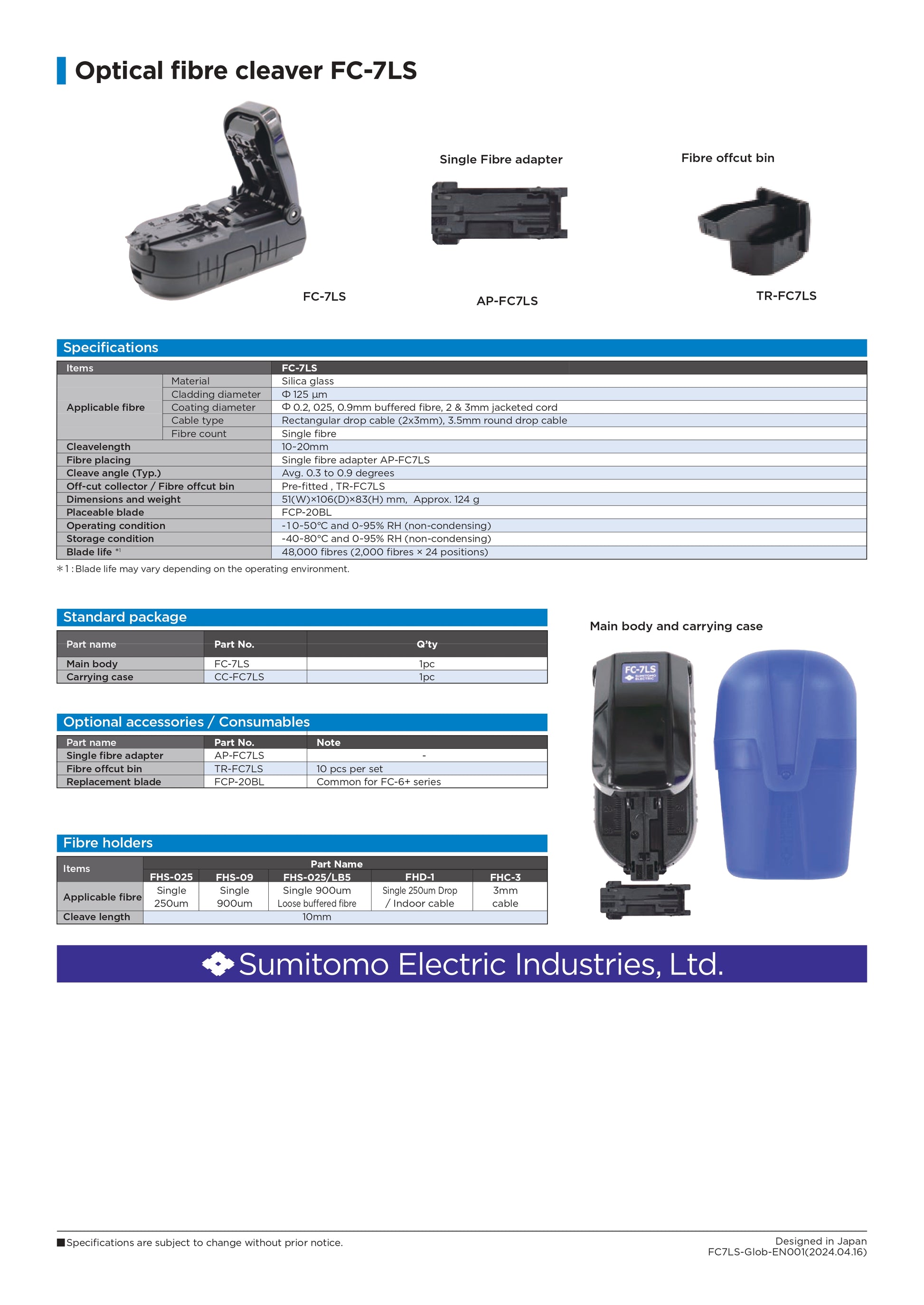 Sumitomo FC-7LS Optical Fiber Cleaver, Easy One-Hand Operation, Lightweight, High Precision Blade, for Single Fiber and Drop Cable
