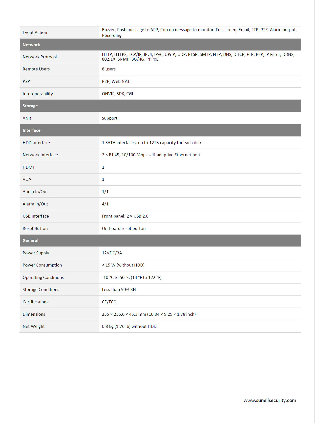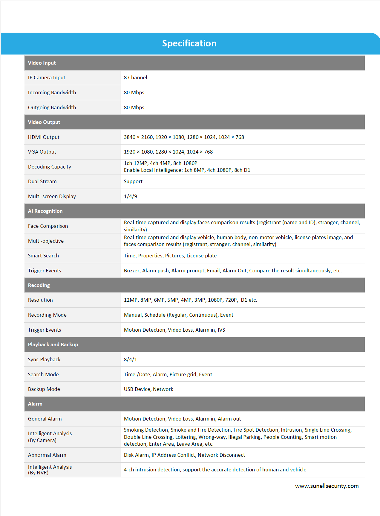 Sunell 8-Channel 4K AI NVR with 12MP Recording & Smart Detection