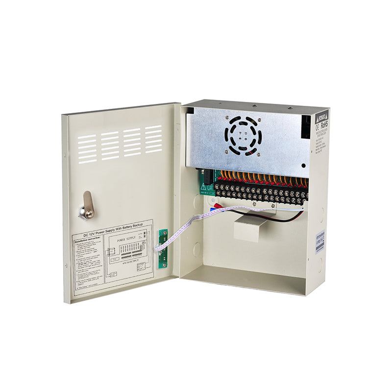 SZ Security CP1218-20A-B 12V 20A 18CH Uninterruptible CCTV Power Supply with Battery Backup, 240W Output, CE/FCC Certified
