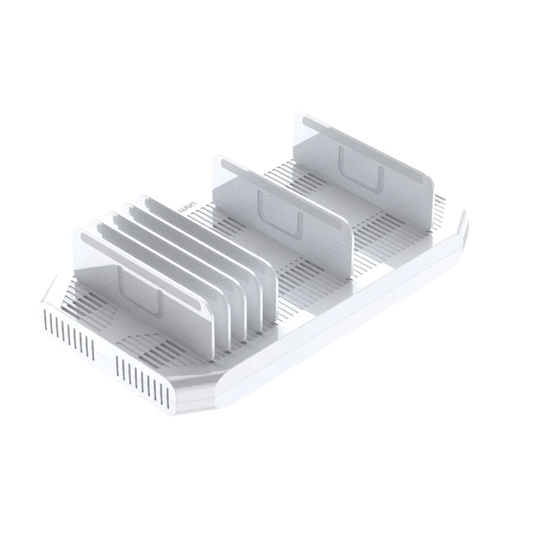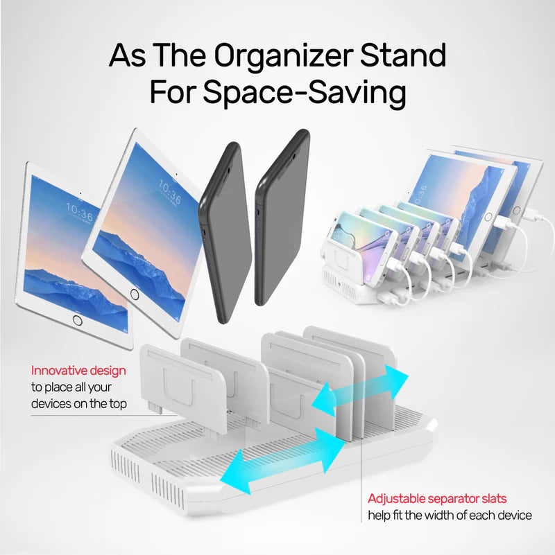 - Innovative design for space saving, put your devices on top of the charging Station when charging.