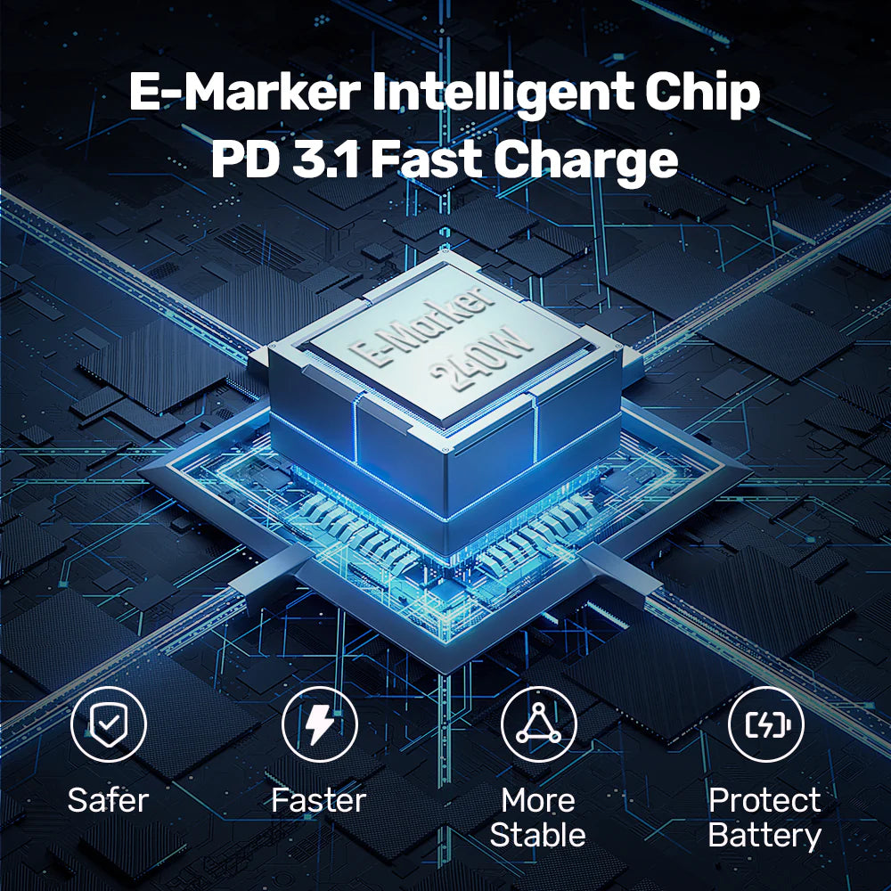 - Safety Features: Built-in E-marker chipset ensures safe and intelligent charging