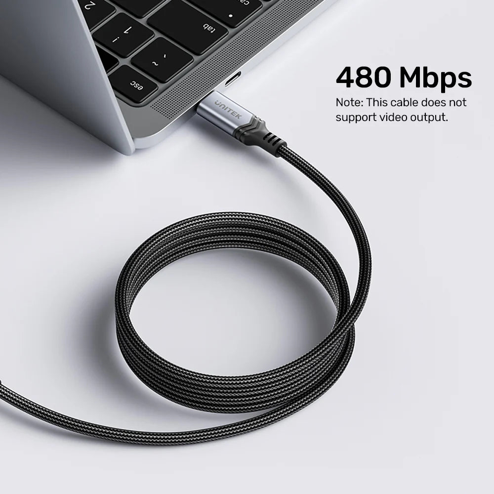 Unitek 240W USB-C PD 3.1 Charging Cable – 2M Nylon Braided - E-Marker Chip - 480Mbps Data Transfer - Compatible with Laptops - Tablets - Smartphones