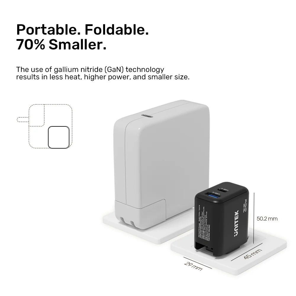 Unitek 35W GaN Travel Charger – Dual Port USB-C PD 3.0 & USB-A QC 3.0 - Ultra-Compact Design - Foldable Plug - Includes EU & UK Adapters