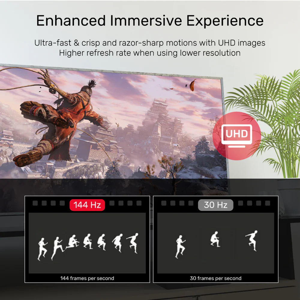 - Maximum Resolutions & Refresh Rates: Up to 8K @ 60Hz; 4K @ 144Hz; 1440p @ 240Hz.