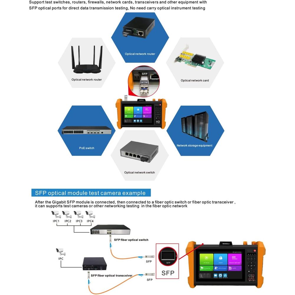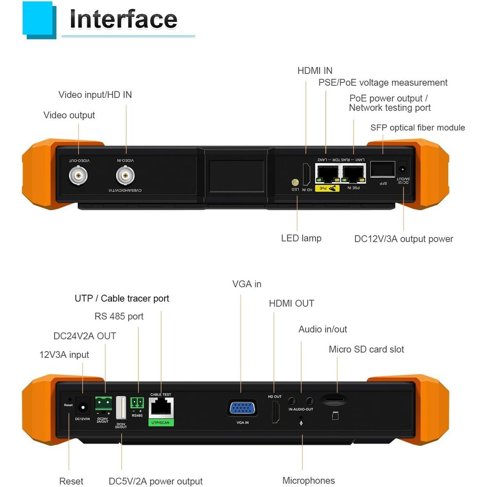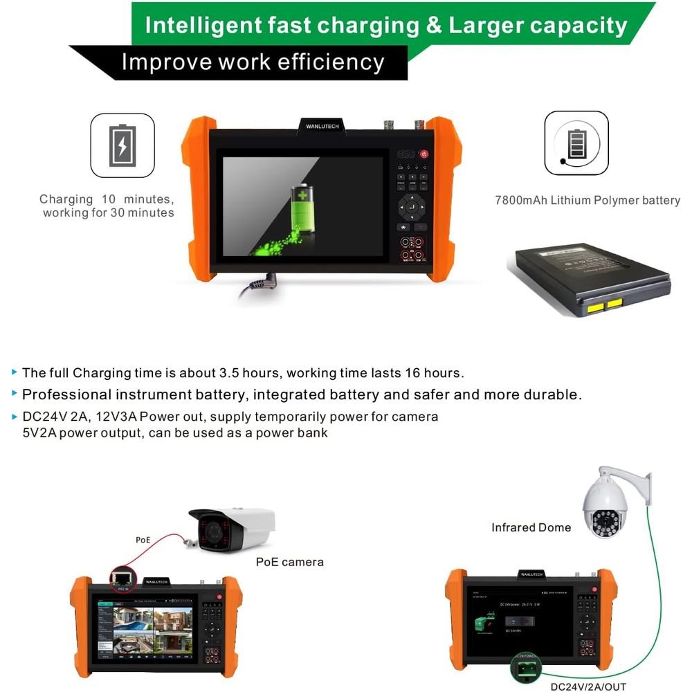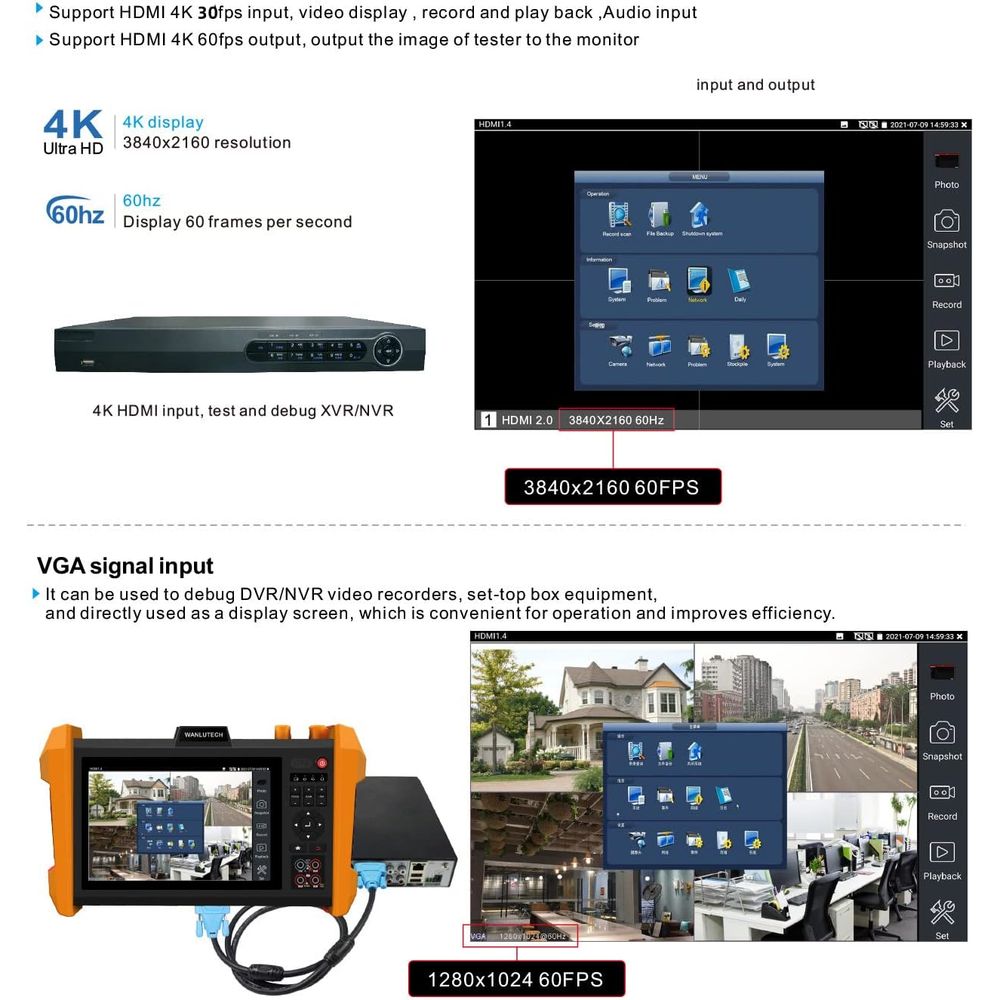 WANGLU 7 inch Retina touch screen, 1920*1200 resolution 8MP AHD camera test (A)/8MP CVI camera test (D)/8MP TVI camera test (H)/4K 30FPS HDMI Input/ VGA input